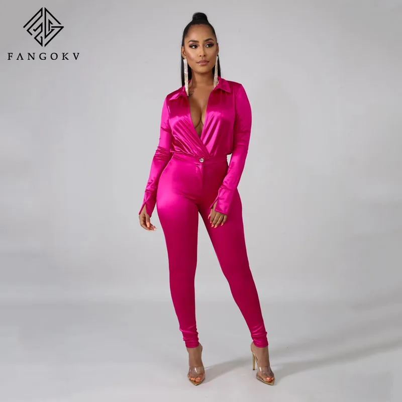Model Number : New Style Women Aexy V Neck Long Sleeve Satin 2 Two Piece Set Shirt Bl