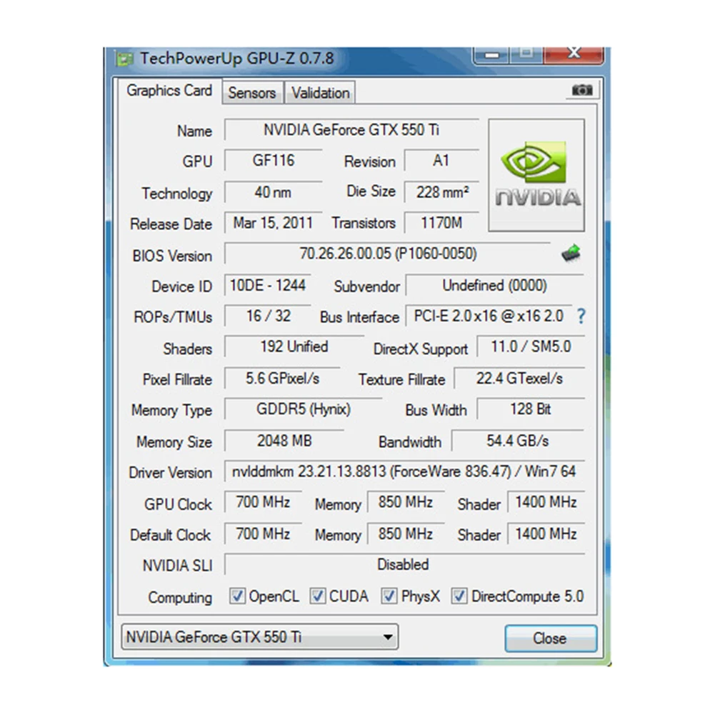 GPU Model : GeForce GTX 550 Ti