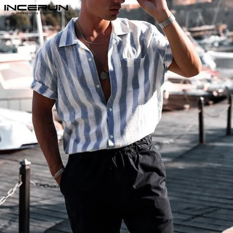 Type : Short Sleeve Loose Casual Shirts Men