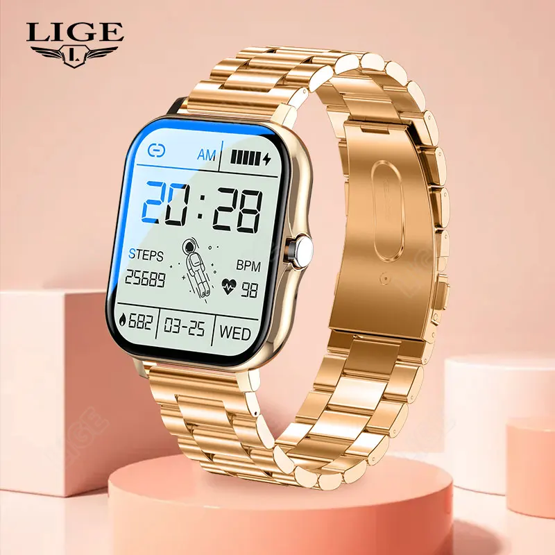 » LIGE Men Smart Watch Women 1.69" Color Screen Full Touch Fitness Tracker Bluetooth Call Smart Clock Ladies Gold Smart Watch Men