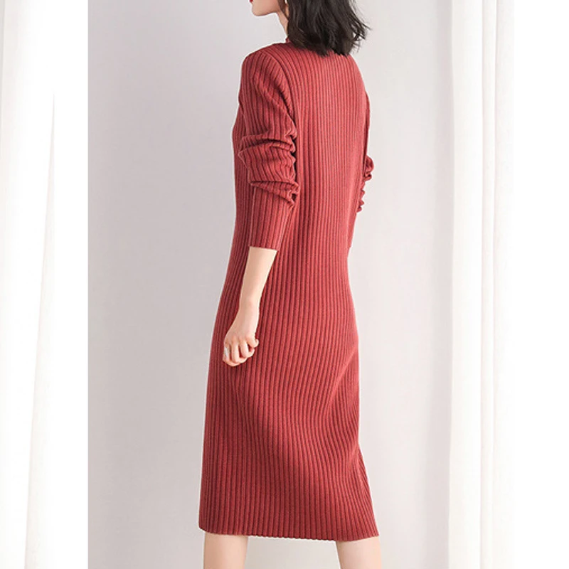 Product Name : Long Sleeve Knitted Sweater Dress